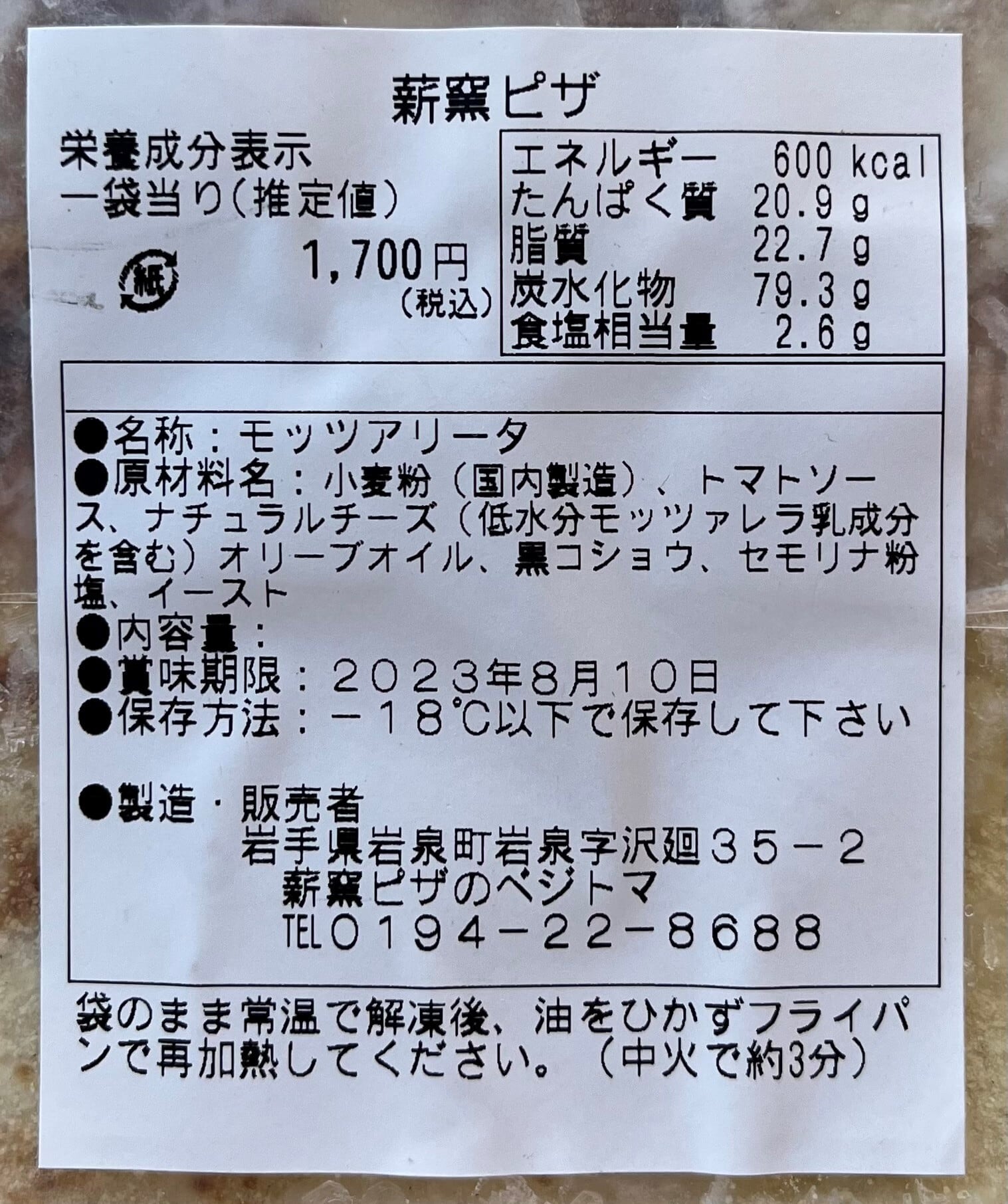 ※ピザの大きさは、22㎝~23㎝くらいになっております。