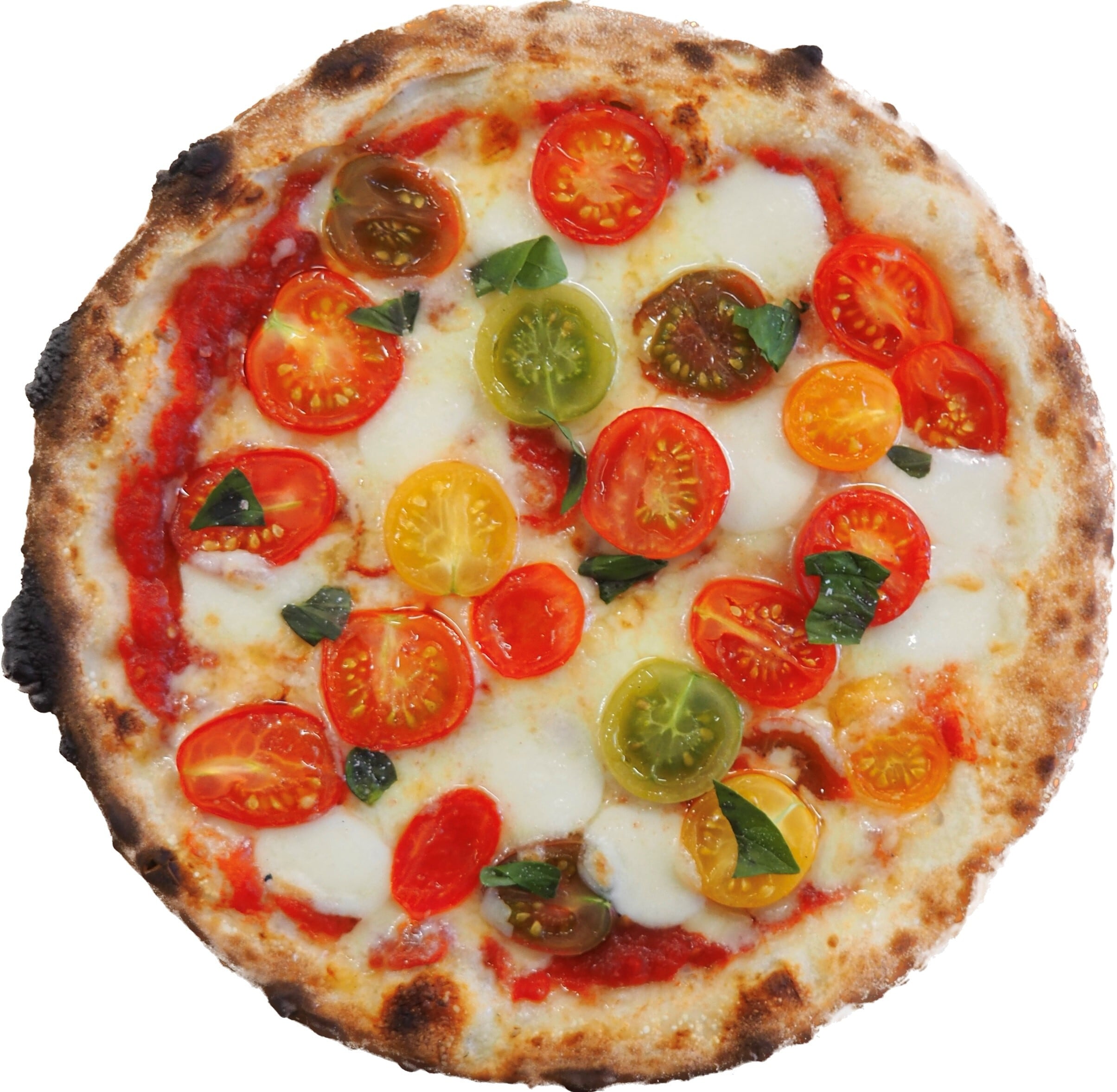 新鮮なカラフルなトマトが主役のピザです!8種類ものカラフルなトマトがのっています。見た目も華やかで、食べるとトマトの味が広がりますよ!そして、もちろんモッツァレラチーズもたっぷりとトッピングしています。